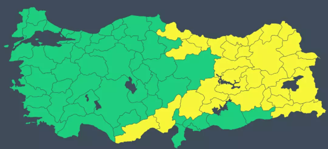 Meteoroloji Genel Müdürlüğü tarafından yayımlanan son değerlendirmeye göre 31 il için sarı kodlu meteorolojik uyarı yapıldı.